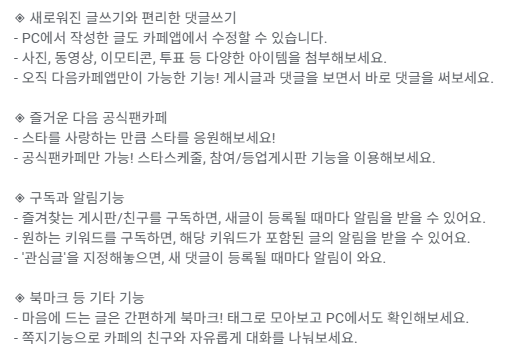 - 다음 카페 앱의 기능을 잘 활용하면 정보 접근 속도와 커뮤니티 활용 수준이 한층 높아진다.