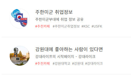- 가입한 카페 리스트가 정리되어 나타나며, 클릭하면 바로 이동 가능